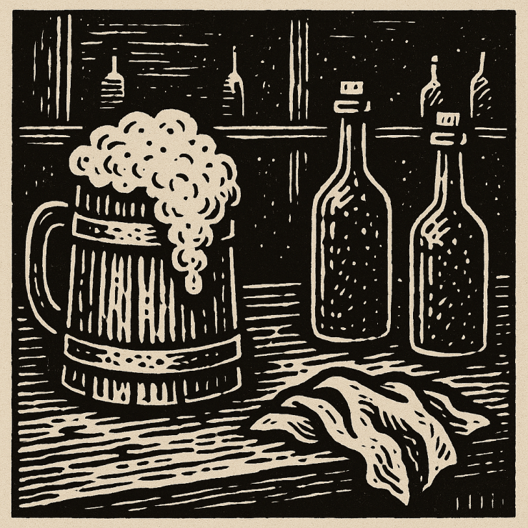 Day quietly moved behind the bar, expression unreadable, hands already at work. He plucked a few dusty glasses from the shelves, inspected them against the flickering magical light, and began polishing them with the least-sticky part of a nearby rag. It didn’t help much.