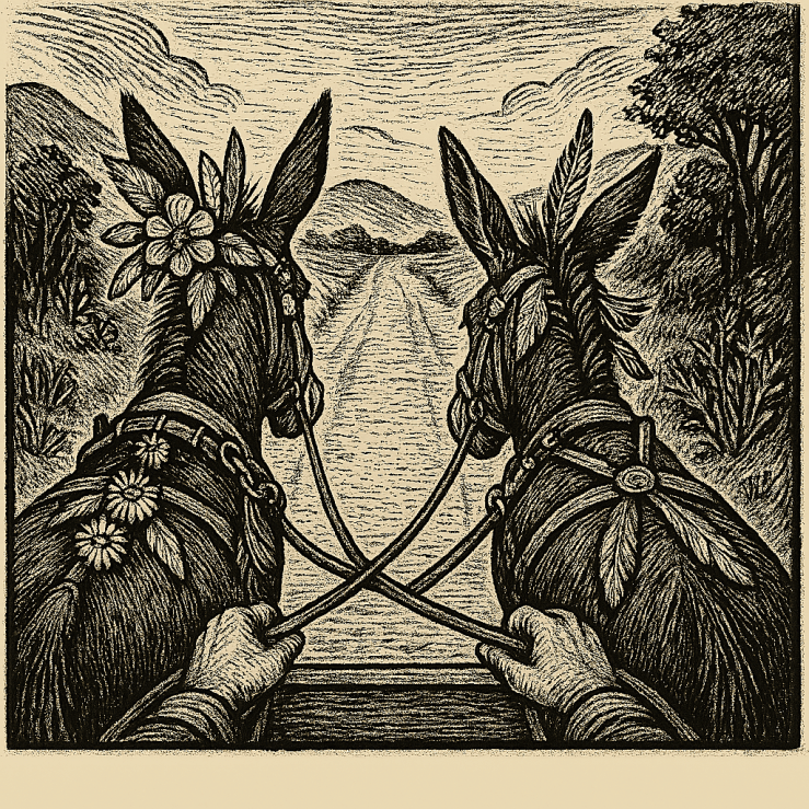 This began innocently enough: a little petting, a little cooing, a few whispered compliments. Then came the glitter. Then feathers. Then braided manes, makeup, a decorative sash made from a strip of old curtain she swore wasn’t stolen, and what might have once been one of Trunch’s handkerchiefs now acting as a headband across one mule’s brow.