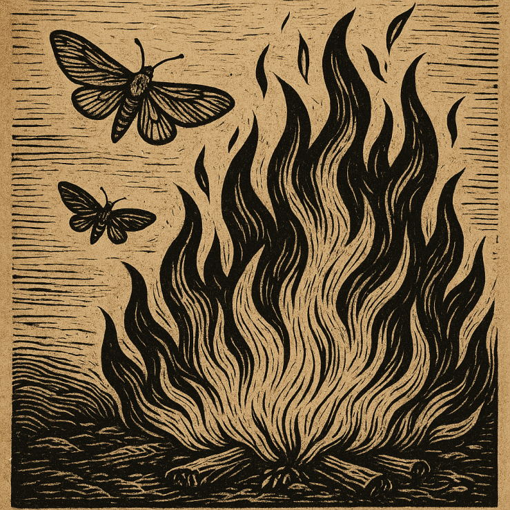 The air grew heavy. The dust began to glow with a sinister, embered shimmer. Shadows danced strangely in the thick haze. The temperature rose. Instantly and horrifically. From somewhere within the swirling ash, light bloomed, blinding and white-hot.